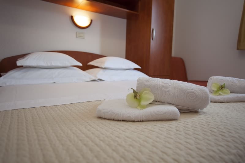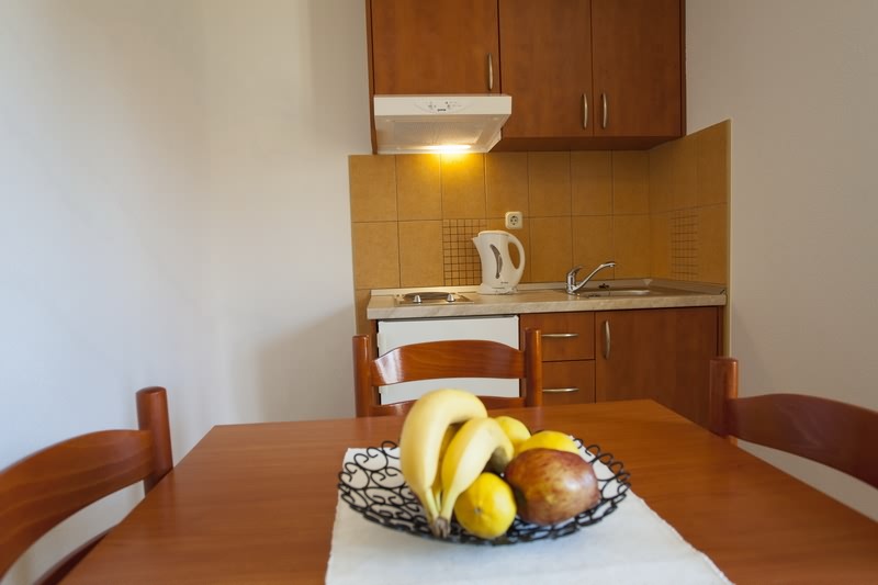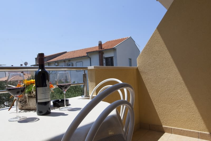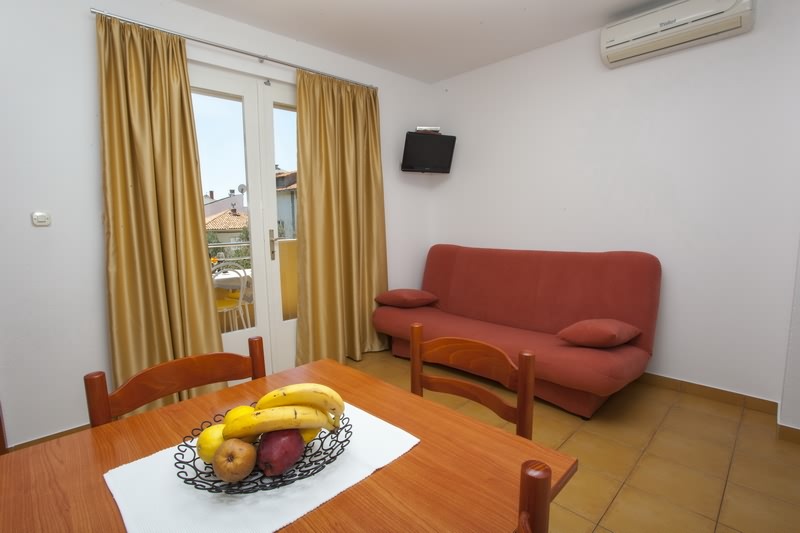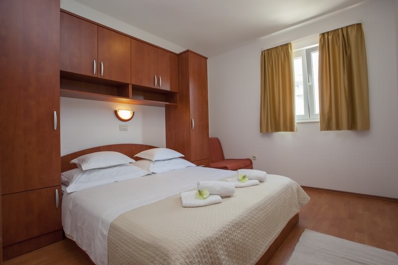Apartmán , 35m2, nachází se na druhém patře, a skládá se z ložnice ve které je manželská postel pro 2 osoby + přistýlka, kuchyně ve které je rozkládací gauč pro 1-2 osoby, koupelna se sprchovým koutem, klimatizace, TV/SAT, free WI-FI, balkon z boku domu ze kterého je možnost výhledu na moře, ale není otočen přímo na moře,parkoviště na dvoře. V ceně je zahrnuta pobytová taxa, povlečení, ručníky i úklid apartmánu.