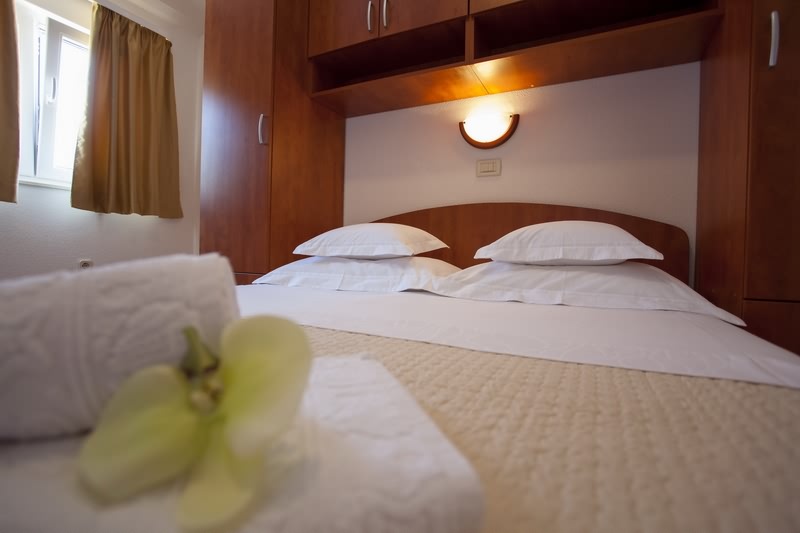 Apartmán, 44m2, je umístěn na třetím patře, a skládá se z ložnice ve které je manželská postel pro 2 osoby + přistýlka, kuchyně ve které se nachází rozkládací gauč pro 1-2 osob, koupelna se sprchovým koutem, klimatizace, TV/SAT, free WI-FI, balkon z přední strany domu který je otočen na Biokovo i ze kterého se může vidět moře, parkoviště na dvoře. V ceně je zahrnuta pobytová taxa, povlečení, ručníky i úklid apartmánu.